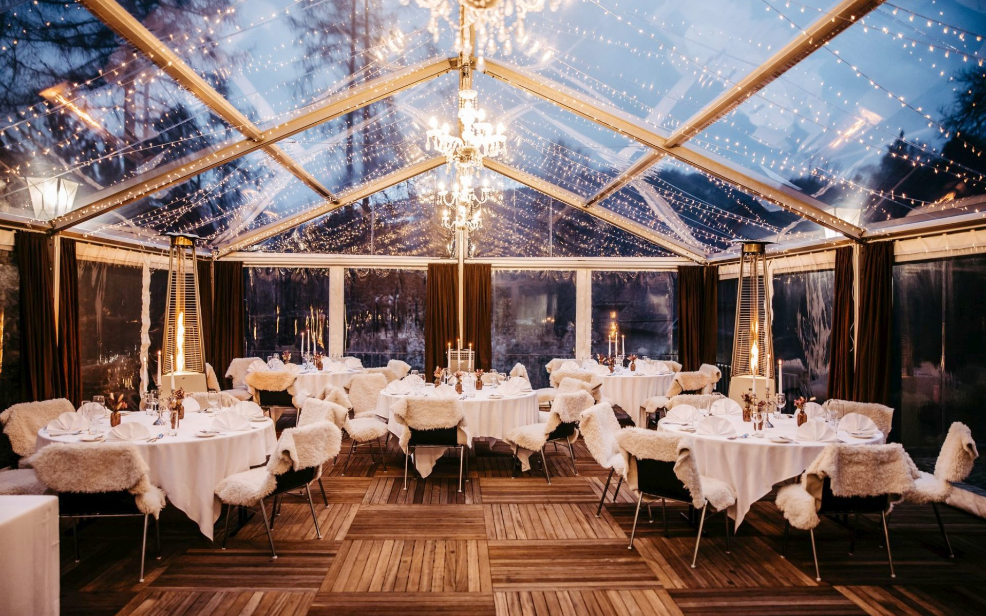 Der Winter Pavillon im Burghof, umgeben von mittelalterlichen Burgruinen, bietet auch im Winter eine beheizte und stimmungsvolle Eventlocation – perfekt für unvergessliche Feiern in historischem Ambiente.